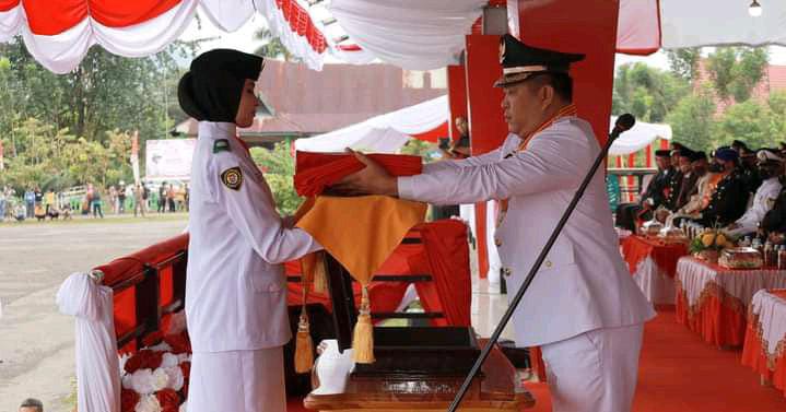 Pengibaran sang saka merah putih melalui upacara penaikan bendera, dipimpin langsung oleh Bupati Konut, Ruksamin, didampingi Wakil Bupati Konut Abu Haera berlangsung hikmah.