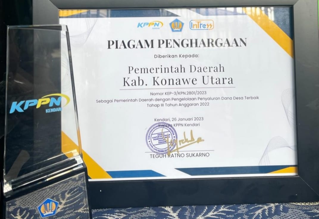 Kali ini dalam bidang keuangan, Pemkab Konut menjadi yang terbaik di Provinsi Sulawesi Tenggara (Sultra), dalam penyaluran Dana Desa (DD) terbaik tahap III Tahun 2022.