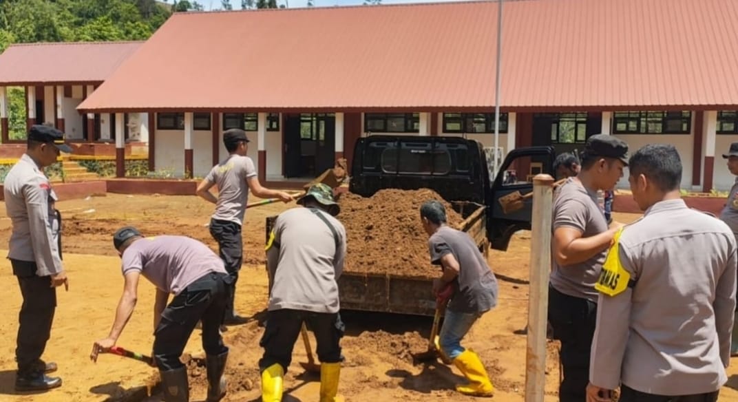 Polres Konut kemudian menggelar kerja bakti, membersihkan lumpur di lingkungan SMP 1 Atap Andowia.