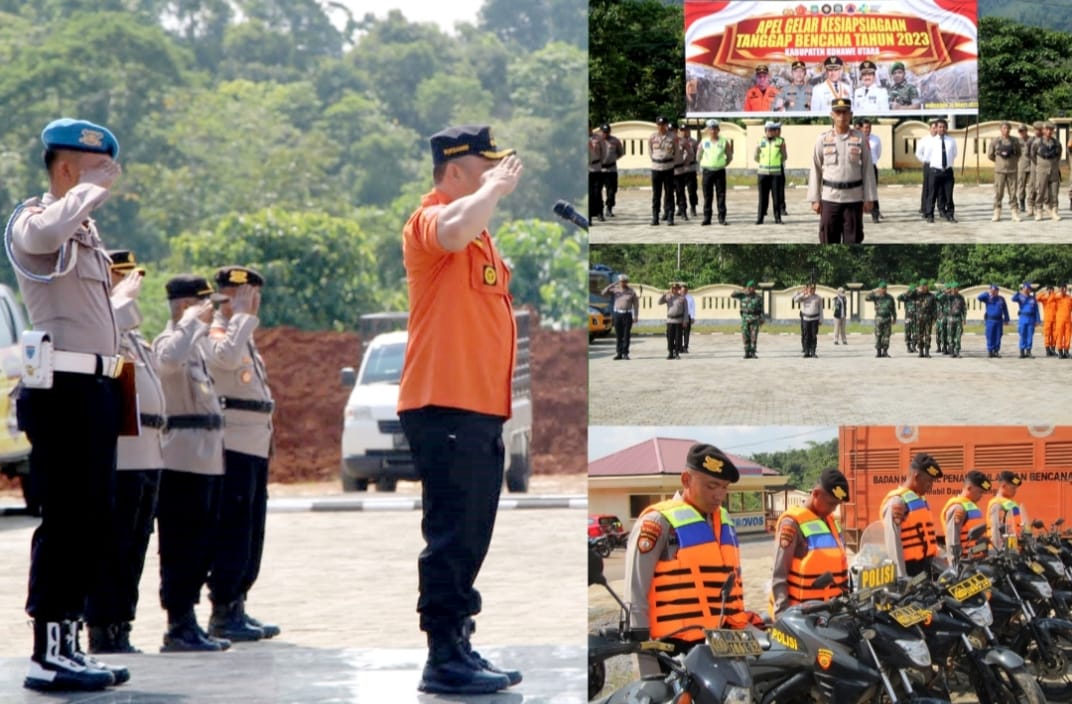 Konawe Utara, Rakyatpostonline.Com – Dalam rangka kesiapan penanggulangan tanggap bencana alam tahun 2023, Polres bersama Instansi Pemkab Konawe Utara (Konut), menggelar apel gabungan gelar pasukan dan peralatan, di halaman Mapolres, Kamis (16/3/2023).