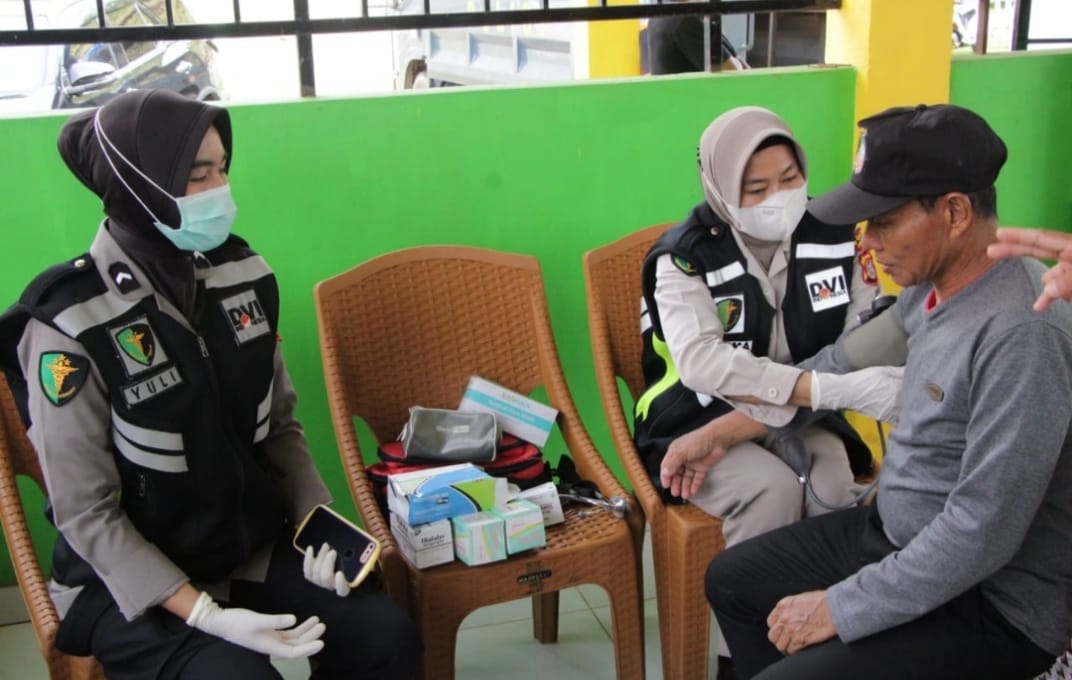 Selain menyerahkan bantuan kemanusiaan, Polres Konut melalui seksi Dokkes juga memberikan pelayanan bagi masyarakat yang ingin mengetahui kondisi kesehatannya.