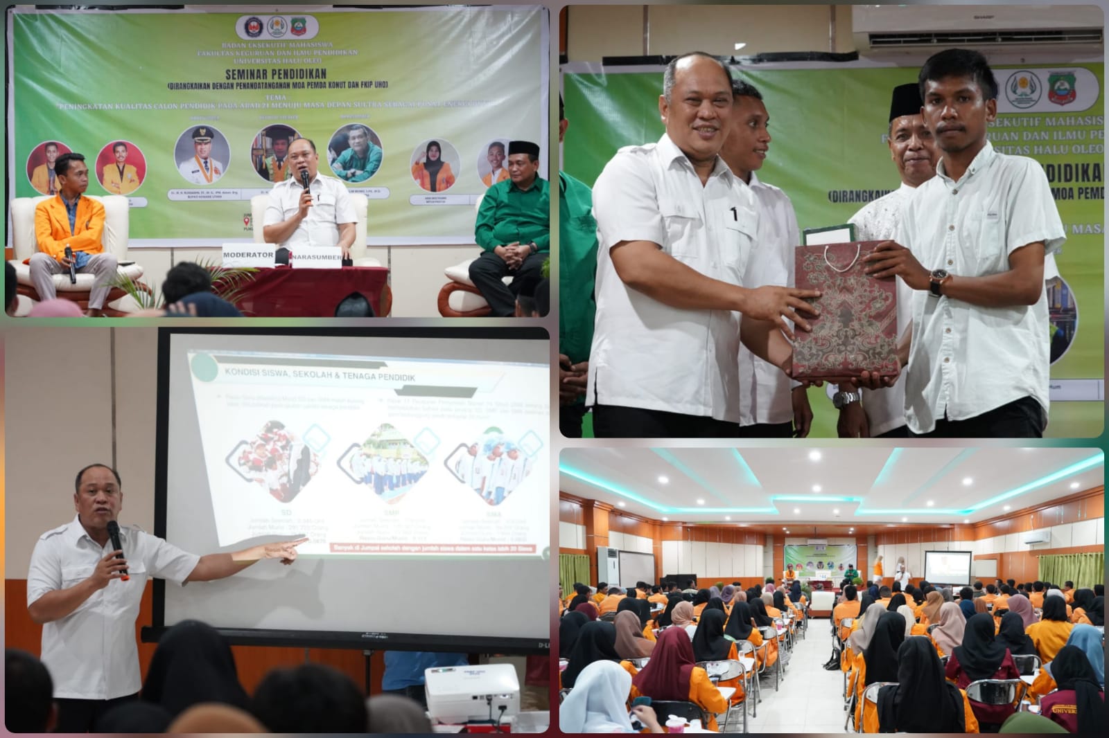 Kendari, Rakyatpostonline.Com – Bupati Konawe Utara (Konut), Ruksamin menghadiri seminar pendidikan yang digelar Badan Eksekutif Mahasiswa Fakultas Keguruan dan Ilmu Pendidikan Universitas Halu Oleo (BEM FKIP UHO), Jumat (7/4/2023).
