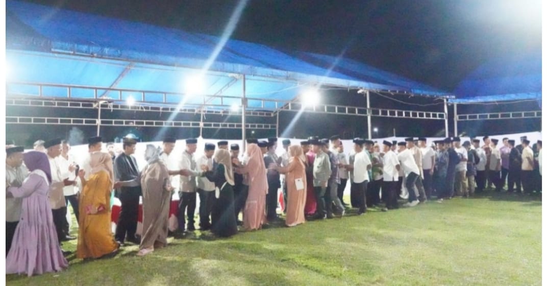 Setelah acara pentas seni selesai, dilanjutkan silaturahmi warga dengan para pemimpin Kabupaten Konut. Mereka terlihat saling berjabat tangan.