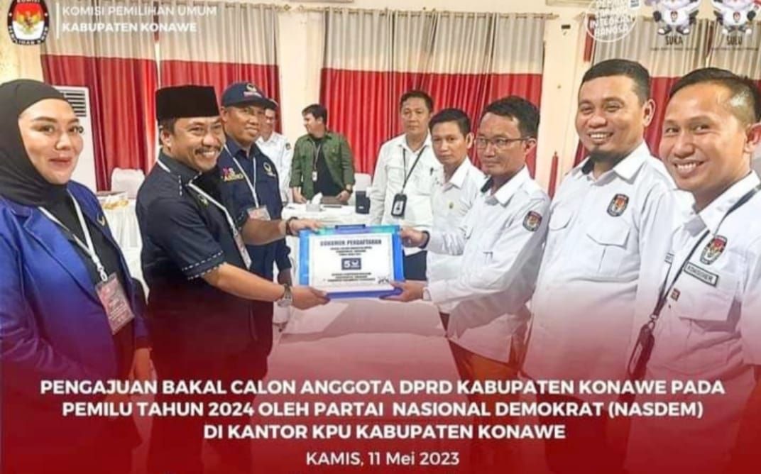Adapun jumlah Bacaleg yang diajukan oleh Partai Nasdem Kabupaten Konawe sebanyak 30 orang yang tersebar di lima daerah pemilihan (Dapil).