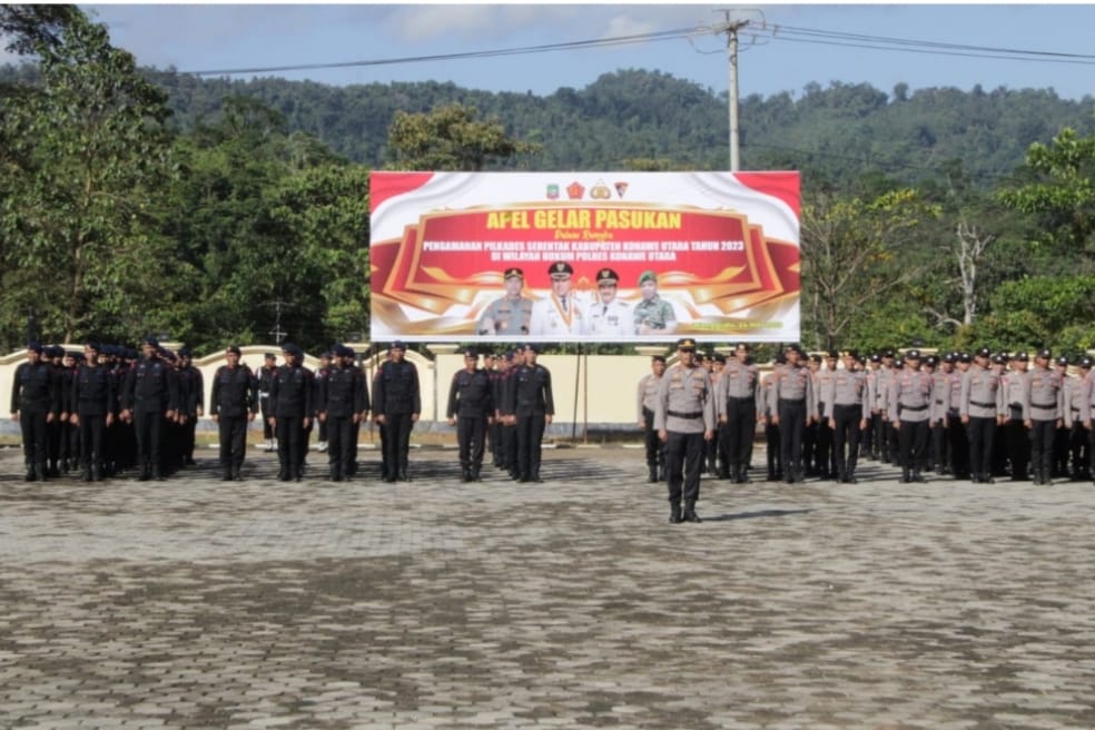 Dalam amanatnya, Ruksamin mengatakan, apel gelar pasukan sebagai kesiapan mengantisipasi dan mengamankan pelaksanaan Pilkades serentak Kabupaten Konut 2023.