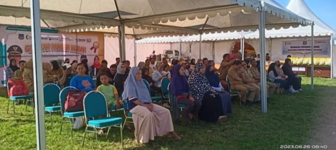 Kegiatan ini dalam rangka stabilisasi pasokan dan harga pangan, ditandai dengan pembukaan pasar murah, di Lapangan Nur Latamoro, Kelurahan Rate-rate, Kecamatan Tirawuta, Senin (26/6/2023).