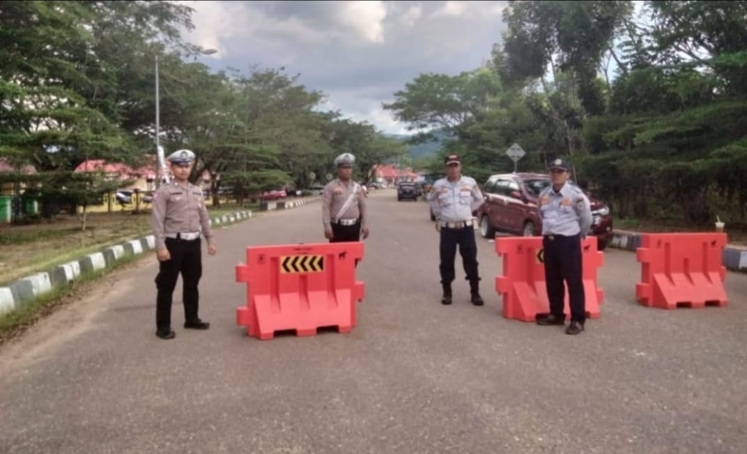Jalur Ibu Kota Wanggudu, gedung DPRD, kantor bupati, aula Konasara dan Kantor DPMD Kabupaten Konut menjadi lokasi monitoring, pengaturan dan pengamanan personel Polres Konut.