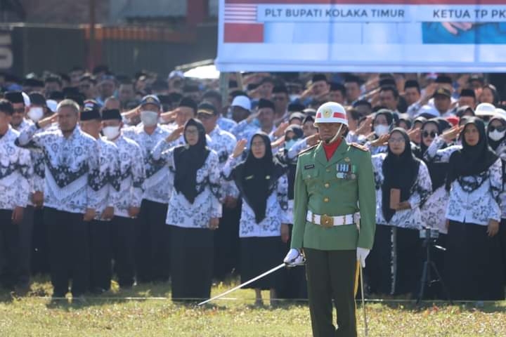 Kolaka Timur, Rakyatpostonline.com – Pada puncak Hari Ulang Tahun (HUT) Ke-78 RI, Pemerintah Kabupaten (Pemkab) Kolaka Timur (Koltim) menggelar upacara pengibaran Sang Saka Merah Putih, di lapangan Sepak Bola Nur Latamoro, Kelurahan Raterate, Kecamatan Tirawuta, Kamis (17/8/2023).