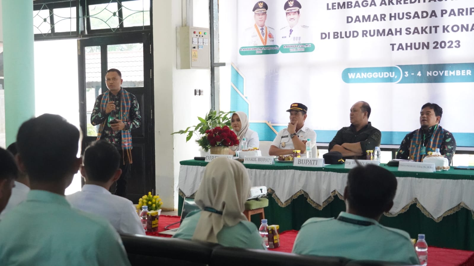 Hadir Bupati Konut, Dr. Ir. H. Ruksamin, S.T., M.Si., IPU., ASEA. Eng, Direktur RSUD Konut dr. Dewi Sarli Tombili, Para Kepala OPD, serta seluruh staf BLUD RS Konut