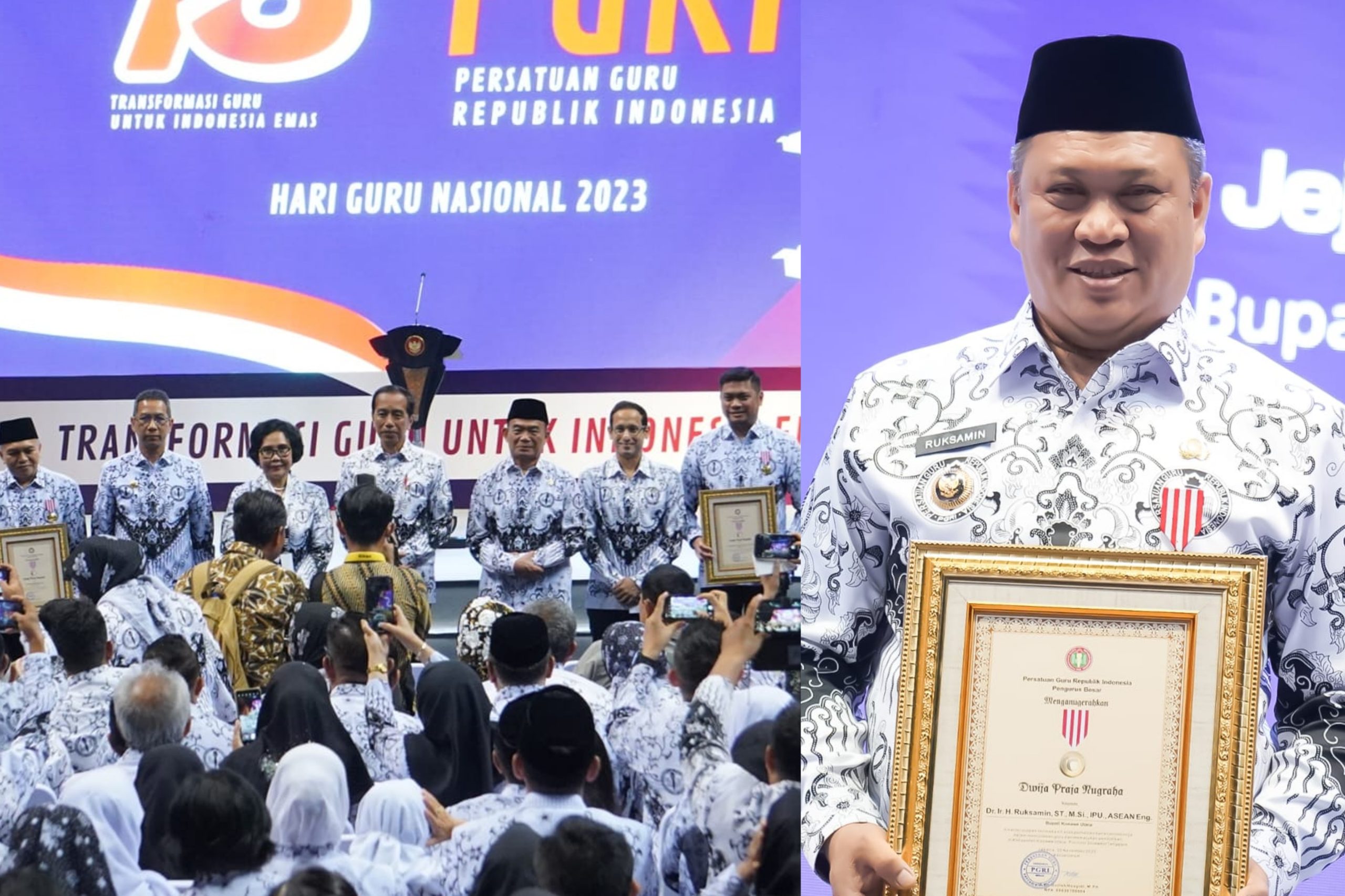Jakarta, Rakyatpostonline.com – Pada acara puncak peringatan HUT ke-78 PGRI dan Hari Guru Nasional Tahun 2023 di Britama Arena, Mahaka Square, Jakarta Utara, Sabtu (25/11/2023), Pengurus Besar Persatuan Guru Republik Indonesia (PGRI) memberikan Anugerah Dwija Praja Nugraha kepada tokoh -tokoh yang dinilai ikut serta memajukan dunia pendidikan.