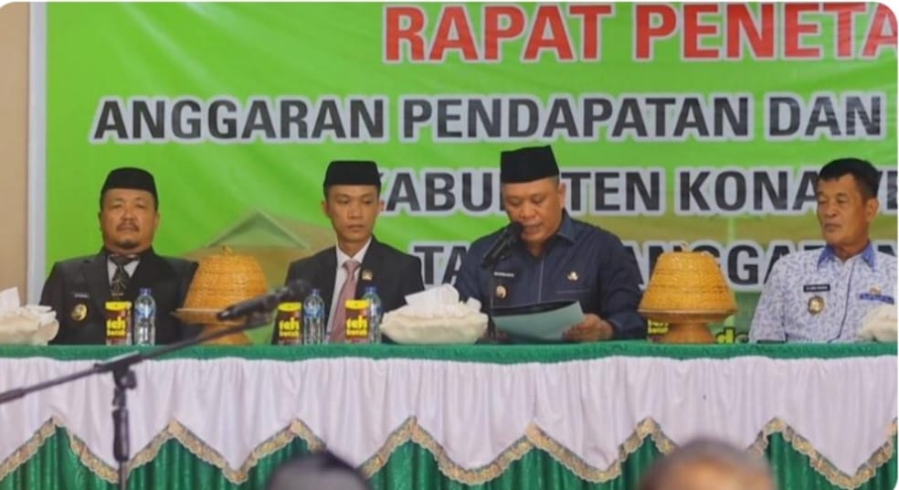Konawe Utara, Rakyatpostonline.Com – Pemerintah Kabupaten (Pemkab) Konawe Utara (Konut), bersama Dewan Perwakilan Rakyat Daerah (DPRD), gelar Penetapan Peraturan Daerah (Perda) tentang Anggara Pendapatan Belanja Daerah (APBD) Konut 2024.