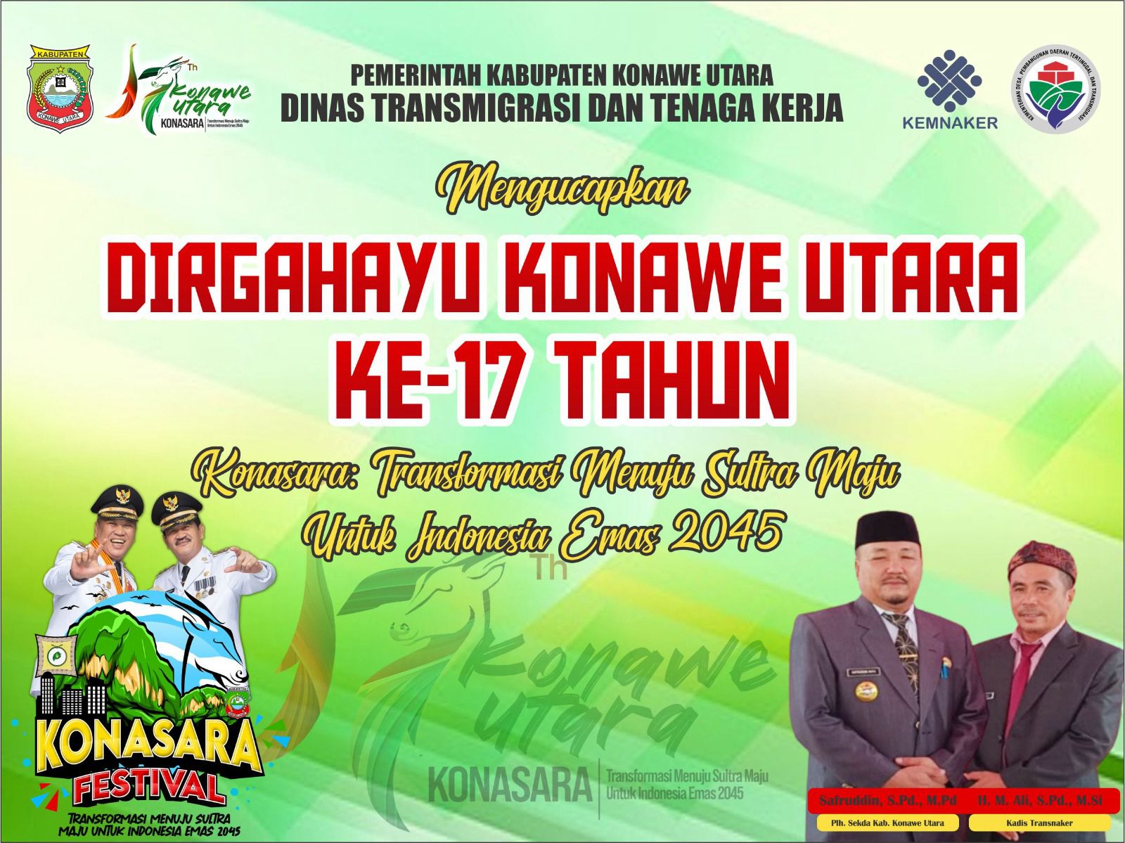 Dari berbagai barisan pawai, salah satu yang ikut dalam kemeriahan ini yakni kontingen dari Dinas Ketenagakerjaan dan Transmigrasi (Disnakertrans) Konut.