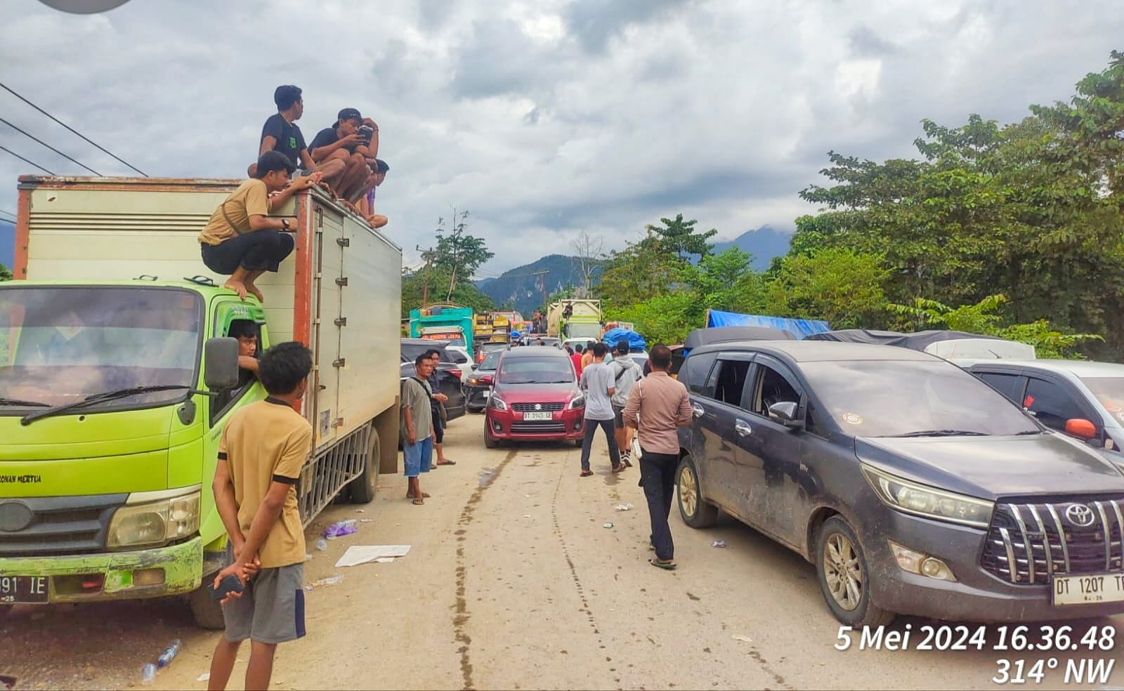 Kondisi ini mengganggu aktivitas masyarakat lokal, mulai dari petani, pelajar, hingga para pengguna jalan yang hendak melintasi jalan poros tersebut.