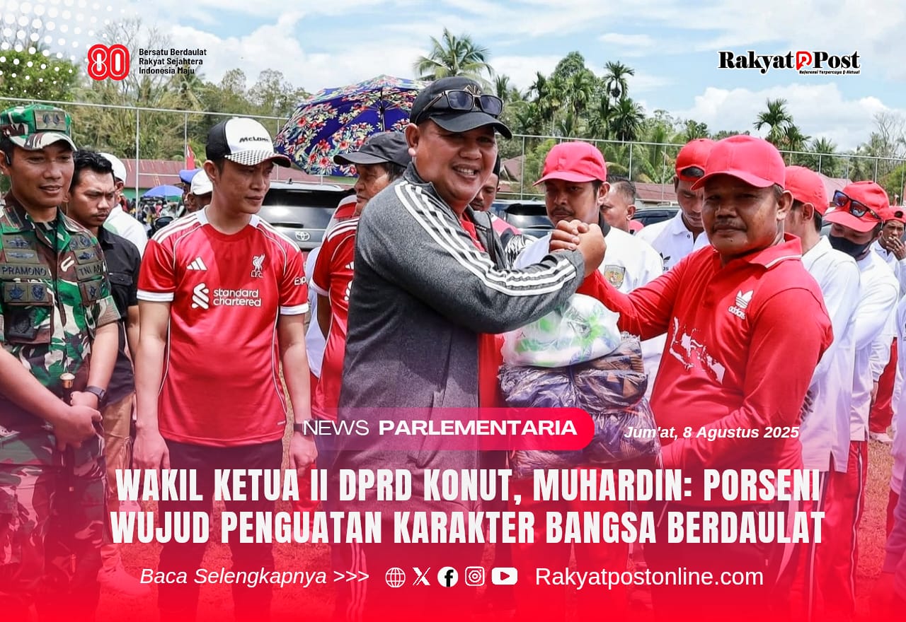 Konawe Utara, Rakyatpostonline.com – Dalam rangka memperingati Hari Ulang Tahun ke-80 Kemerdekaan Republik Indonesia, Wakil Ketua II DPRD Konawe Utara (Konut), Muhardin, S.Pd., memberikan apresiasi yang tinggi atas terselenggaranya Pekan Olahraga dan Seni (Porseni) 17 Agustus 2025 di Kecamatan Andowia dan Asera.
