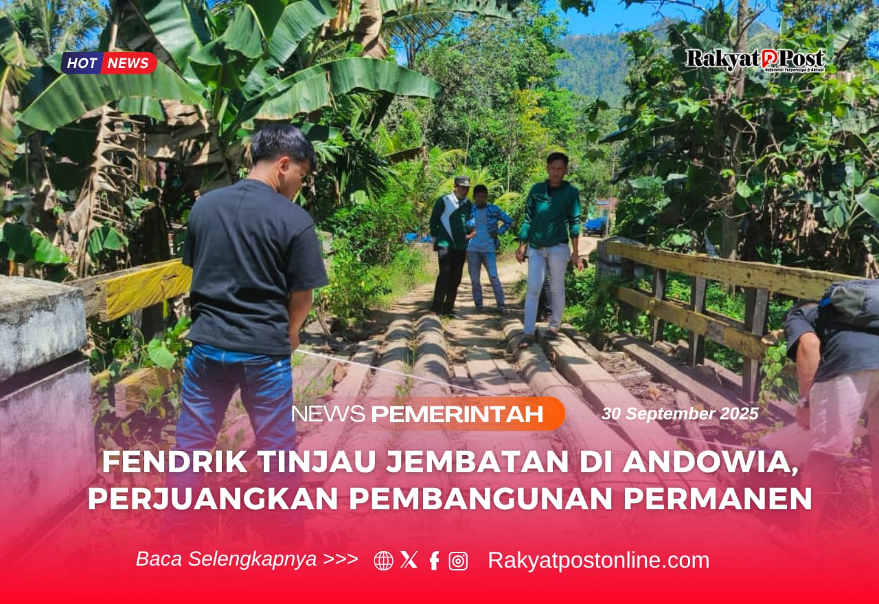 Konawe Utara, Rakyatpostonline.com – Anggota DPRD Kabupaten Konawe Utara dari Partai Bulan Bintang (PBB), Fendrik S.Kom, turun langsung meninjau kondisi jembatan yang menjadi akses utama ke area persawahan di Kelurahan Andowia, Kecamatan Andowia, Selasa (30/9/2025).