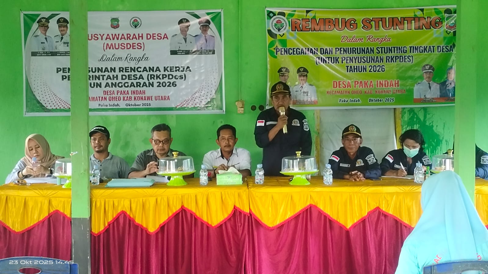 Suasana Musyawarah Desa (Musdes) Desa Paka Indah, Kecamatan Oheo, Kabupaten Konawe Utara, dalam rangka penyusunan Rencana Kerja Pemerintah Desa (RKPDes) Tahun Anggaran 2026 dan Rembug Stunting, yang berlangsung di Balai Desa setempat, Rabu (23/10/2025). Diikuti pendamping desa, kader kesehatan, serta perwakilan masyarakat.