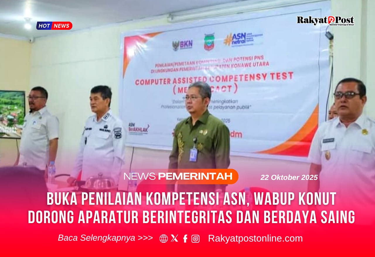 Komitmen tersebut ditunjukkan melalui pelaksanaan Penilaian Pemetaan Kompetensi dan Potensi Pegawai Negeri Sipil (PNS) dengan metode Computer Assisted Competency Test (CACT) yang secara resmi dibuka oleh Wakil Bupati Konut, H. Abuhaera, S.Sos., M.Si, mewakili Bupati H. Ikbar, S.H., M.H, di Kantor UPT Badan Kepegawaian Negara (BKN), pada Rabu (22/10/2025).