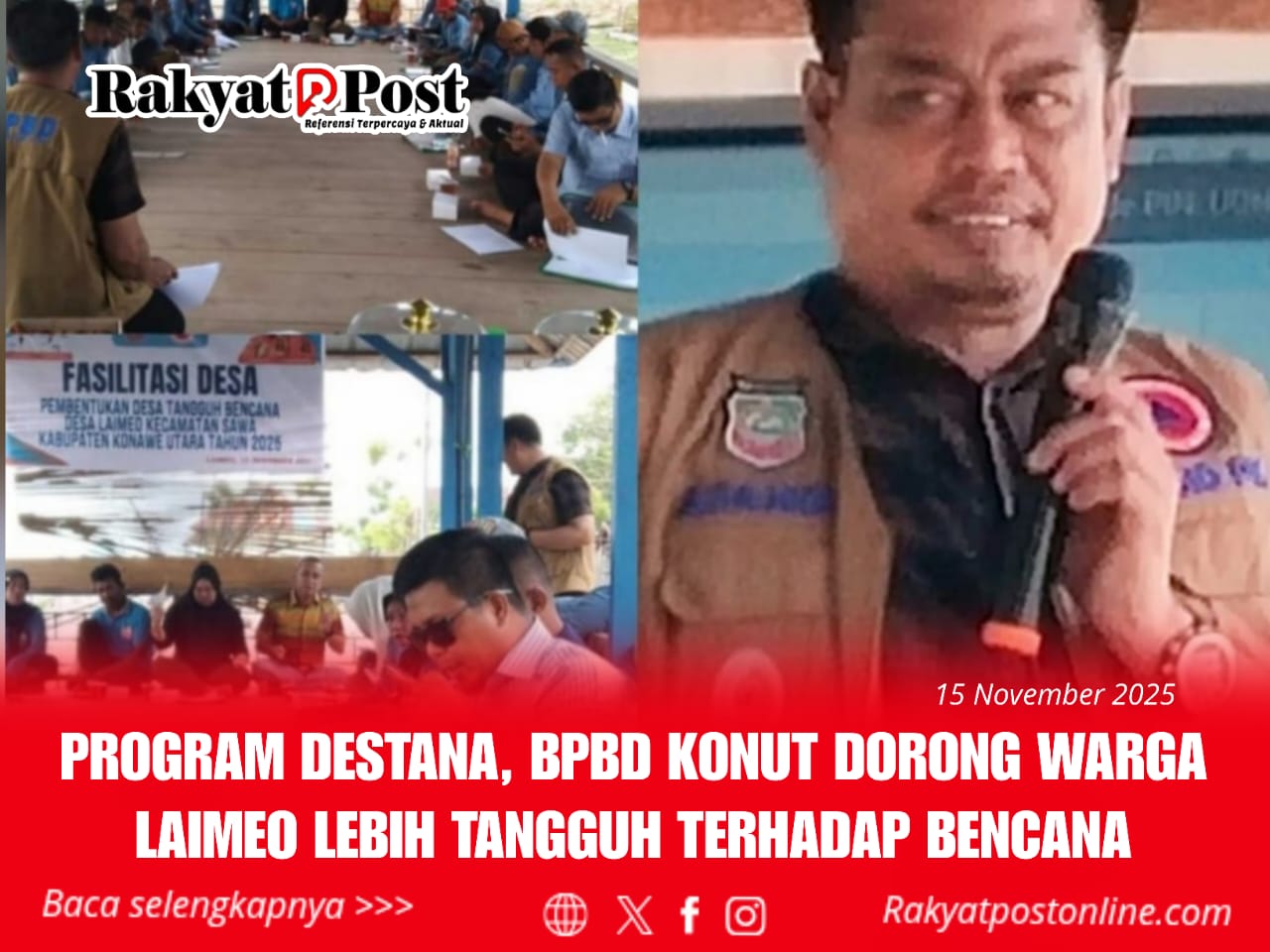 Melalui Badan Penanggulangan Bencana Daerah (BPBD) Konut, program pembentukan Desa Tangguh Bencana (Destana) kembali digencarkan, kali ini dengan menyasar masyarakat Desa Laimeo, Kecamatan Sawa.