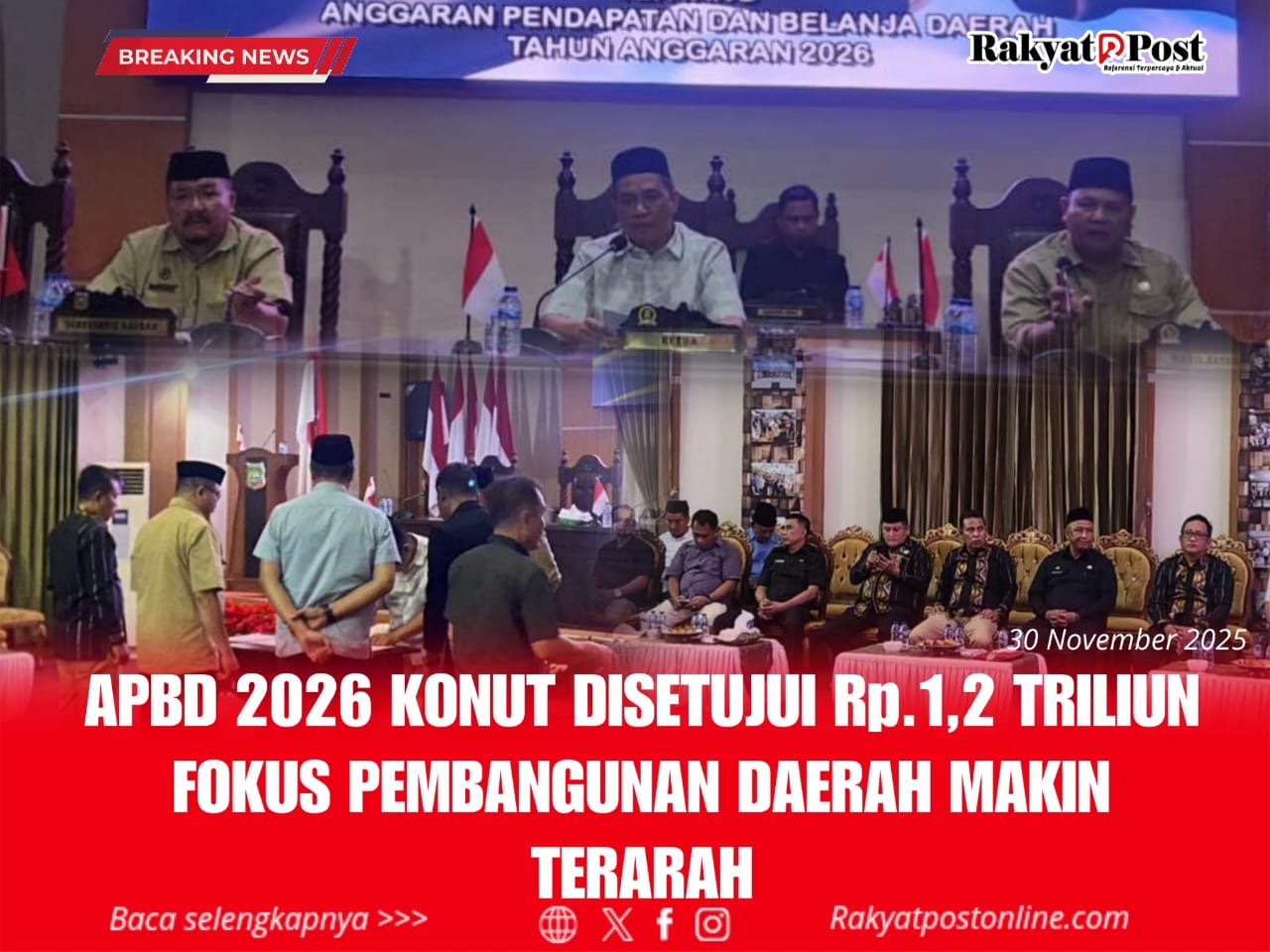 Dalam momentum penting tersebut, Pemerintah Kabupaten (Pemkab) Konut dan DPRD secara resmi menyetujui APBD TA 2026 sebesar Rp1,2 Triliun lebih atau tepatnya Rp1.209.722.540.235.