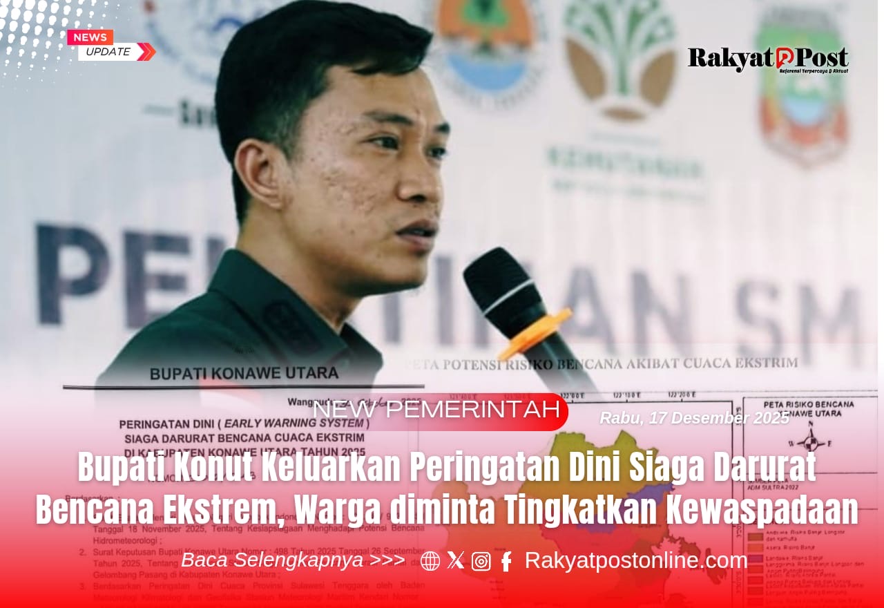 Konawe Utara, Rakyatpostonline.Com — Pemerintah Kabupaten (Pemkab) Konawe Utara (Konut) resmi menetapkan status kewaspadaan tinggi terhadap potensi bencana alam akibat cuaca ekstrem.