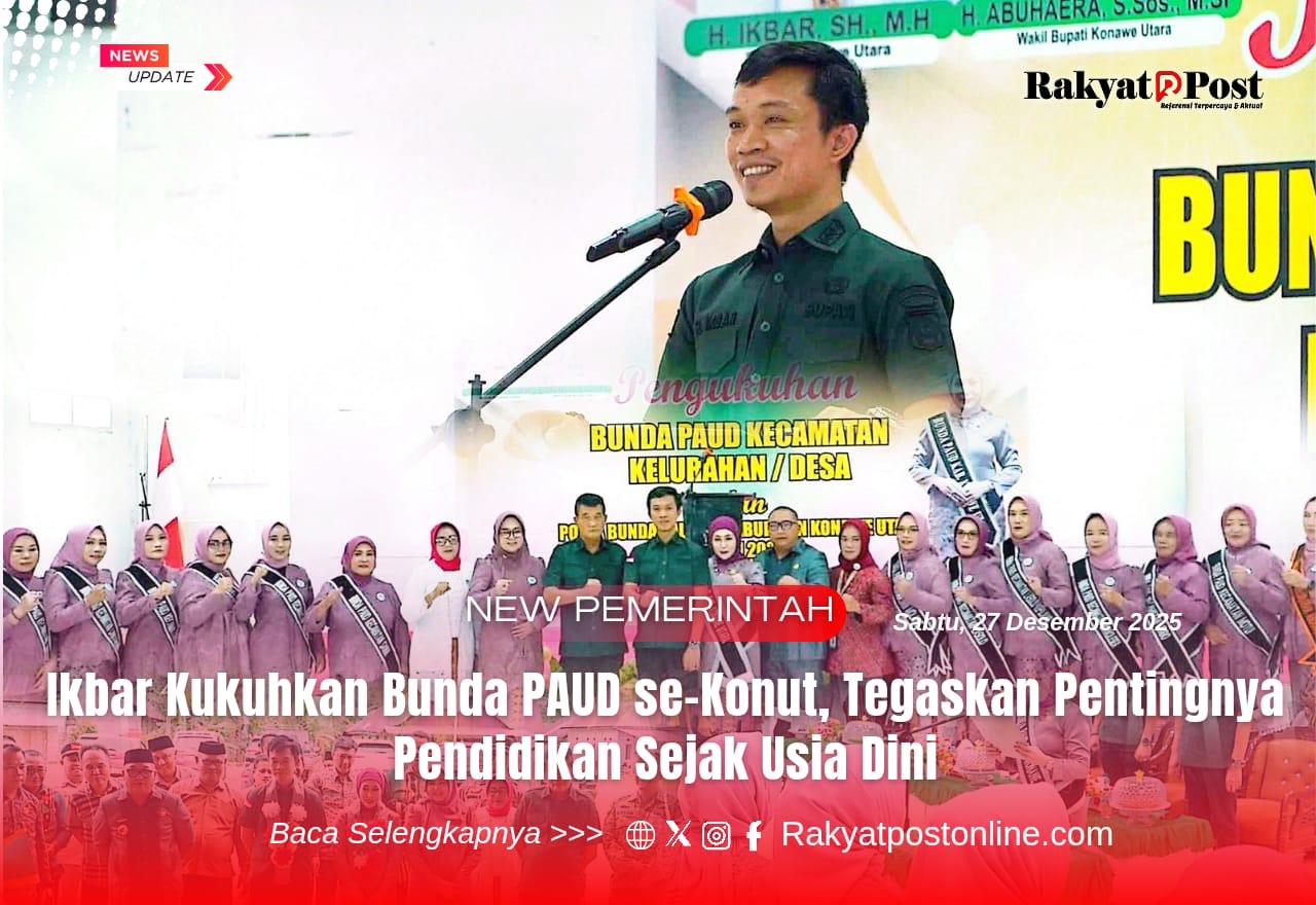 Hal itu ditandai dengan kehadiran langsung Bupati Konawe Utara, H. Ikbar, SH., MH, pada acara Pengukuhan Bunda PAUD Kecamatan, Kelurahan/Desa, serta Kelompok Kerja (Pokja) PAUD se-Kabupaten Konawe Utara, yang digelar di Hotel Oheo, Sabtu (27/12/2025).