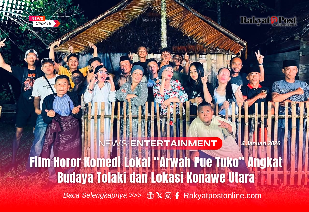 Konawe Utara, Rakyatpostonline.com – Industri kreatif Sulawesi Tenggara kembali menunjukkan geliat positif. Sebuah film horor komedi berjudul “Arwah Pue Tuko” dipastikan segera tayang pada 17 Januari 2026.