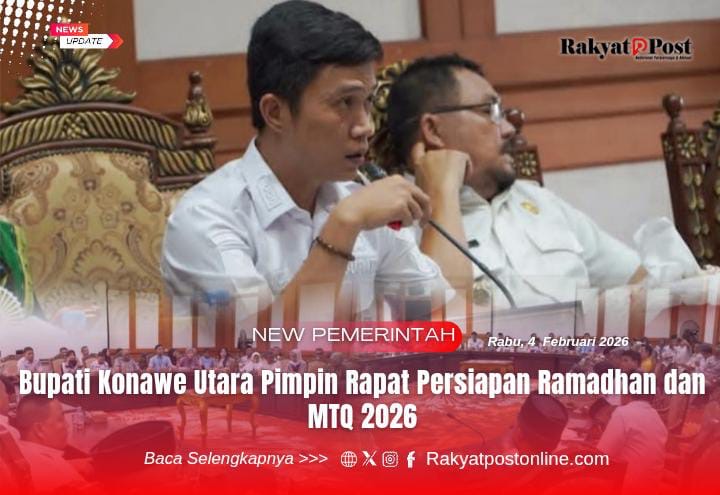 Konawe Utara, Rakyatpostonline.Com – Pemerintah Kabupaten Konawe Utara mulai mematangkan persiapan menyambut Bulan Suci Ramadhan 1447 Hijriah/2026 Masehi. Bupati Konawe Utara, H. Ikbar, SH., MH, memimpin langsung rapat koordinasi persiapan Ramadhan yang digelar di Ruang Rapat Kantor Bupati Konawe Utara, Rabu (4/2/2026).