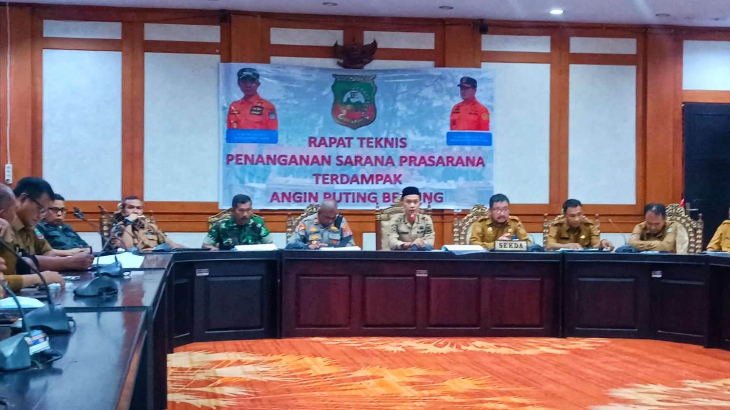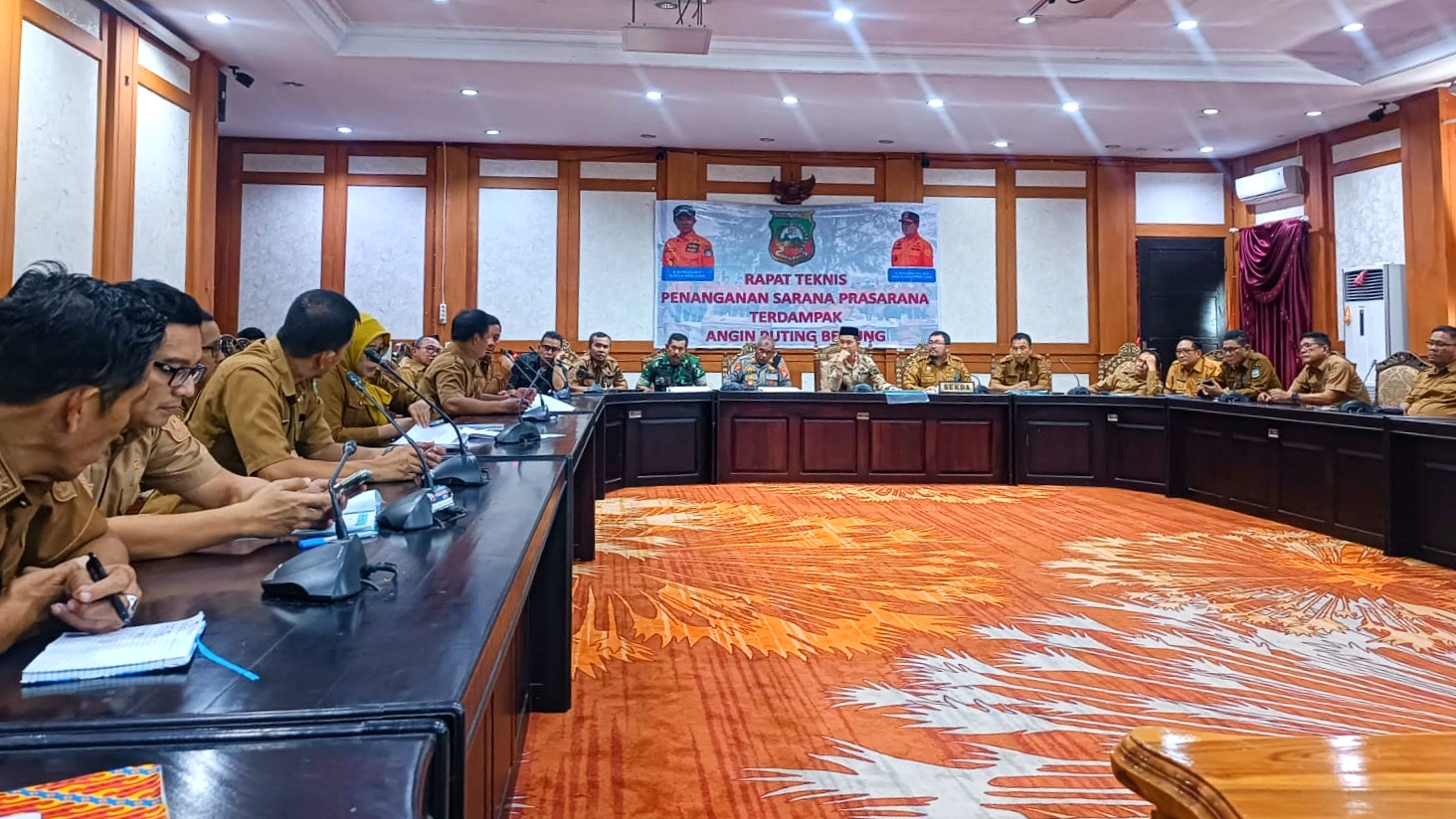 Rapat teknis penanganan sarana dan prasarana terdampak angin puting beliung 2026 bersama unsur TNI-Polri dan jajaran OPD.