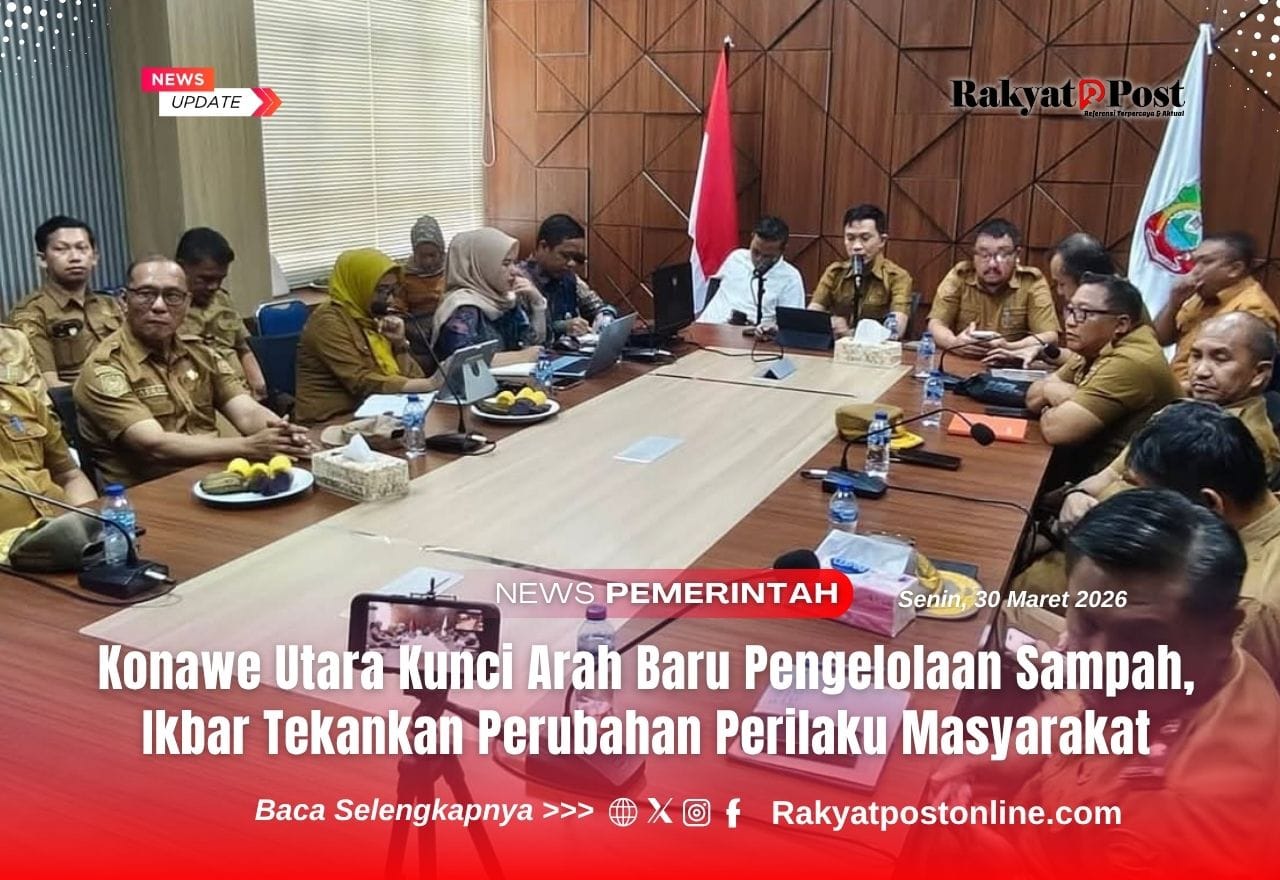 Konawe Utara, Rakyatpostonline.com – Pemerintah Kabupaten Konawe Utara mulai mengunci langkah strategis dalam pembenahan tata kelola persampahan. Bupati Konawe Utara, Ikbar, memimpin langsung rapat koordinasi Program Komunikasi, Informasi, dan Edukasi (KIE) bersama Tim Pusat Standardisasi Instrumen Lingkungan Hidup, yang digelar di Aula Bapperida Lantai 2, Senin (30/3/2026).