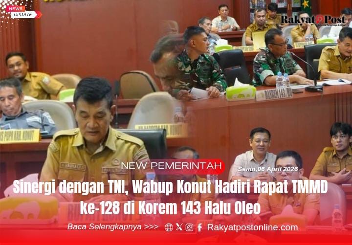 Kendari, Rakyatpostonline.com – Wakil Bupati Konawe Utara Abuhaera menghadiri rapat persiapan pelaksanaan TNI Manunggal Membangun Desa (TMMD) Reguler ke-128 yang digelar di Aula Tamalaki Korem 143/Halu Oleo, Senin (6/4/2026).