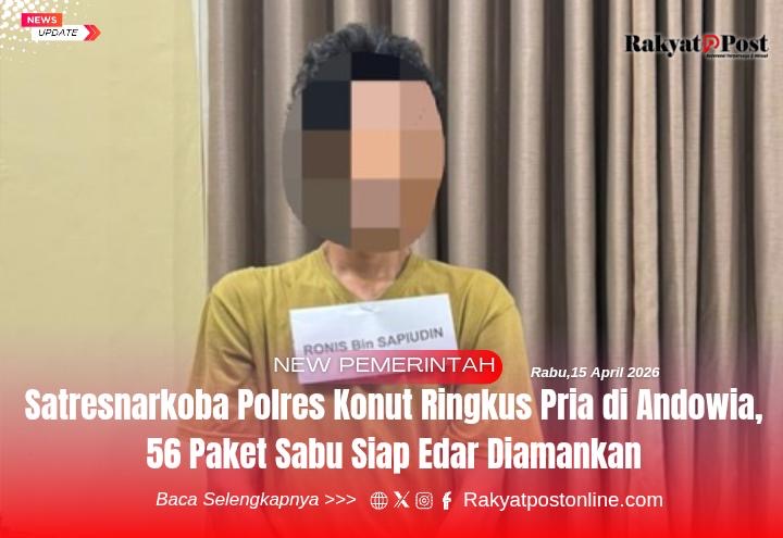 Konawe Utara, Rakyatpostonline.com – Upaya pemberantasan narkotika terus digencarkan jajaran Satresnarkoba Polres Konawe Utara. Kali ini, seorang pria berinisial R (30) berhasil diamankan saat diduga hendak mengedarkan narkotika jenis sabu di wilayah Kelurahan Andowia, Kecamatan Andowia, Rabu (15/4/2026) sekitar pukul 17.00 Wita.