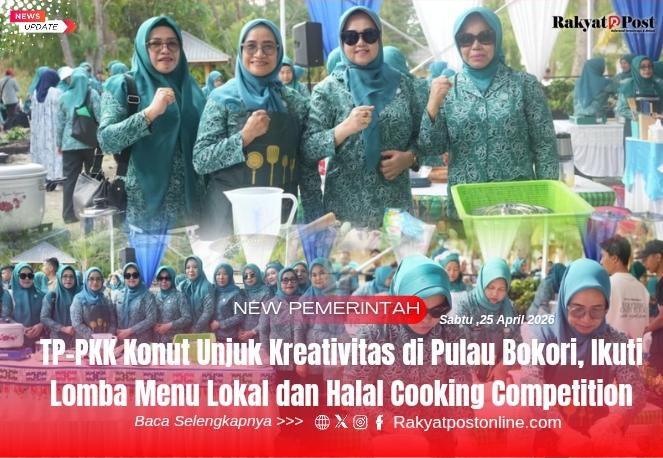 KONAWE UTARA, Rakyatpostonline.com – Tim Penggerak Pemberdayaan dan Kesejahteraan Keluarga (TP-PKK) Kabupaten Konawe Utara (Konut) turut ambil bagian dalam perhelatan akbar yang digelar di Pulau Bokori, Kecamatan Soropia, Sabtu (25/4/2026). Kehadiran delegasi Konut ini dalam rangka mengikuti dua kompetisi bergengsi, yakni Lomba Cipta Menu Pangan Lokal dan Halal Cooking Competition.