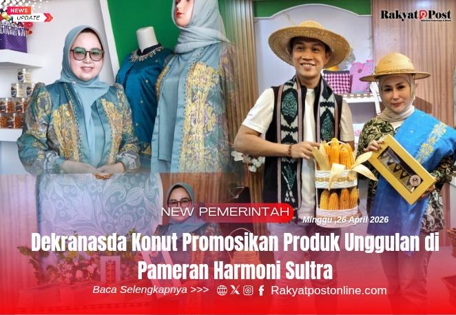 Kendari, Rakyatpostonline.com – Ketua Dewan Kerajinan Nasional Daerah (Dekranasda) Kabupaten Konawe Utara, Hj. Wisra Wastawati Ikbar, S.Tr.Keb., M.Kes., tampil aktif mempromosikan produk unggulan daerah dalam ajang pameran Harmoni Sultra yang menjadi bagian dari peringatan Hari Ulang Tahun (HUT) ke-62 Provinsi Sulawesi Tenggara, Minggu (26/4/2026).